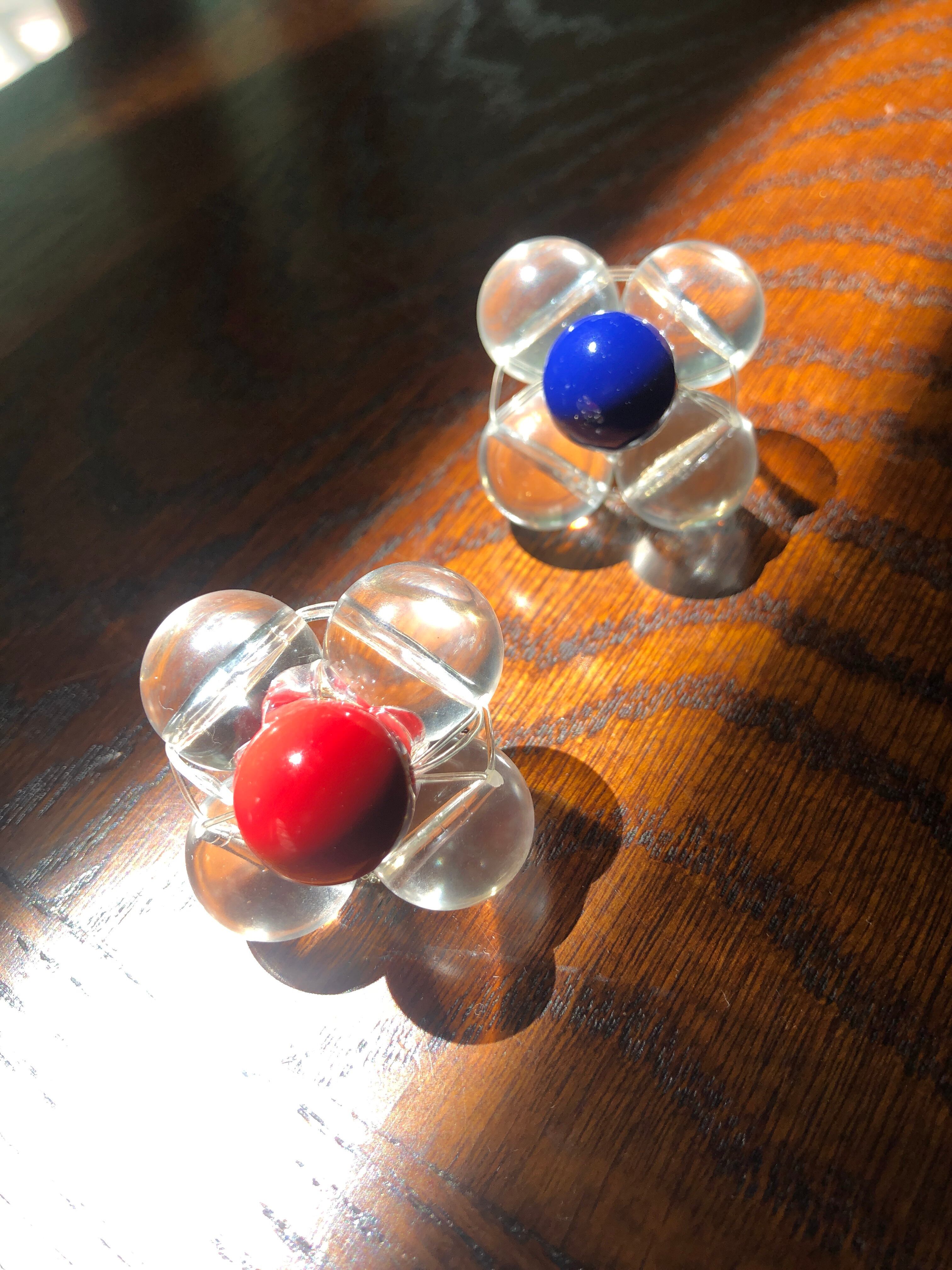 クリアと真っ赤なラウンドのアクリル使って、大きくて可愛いお花を編み、リングを作りました(^-^)